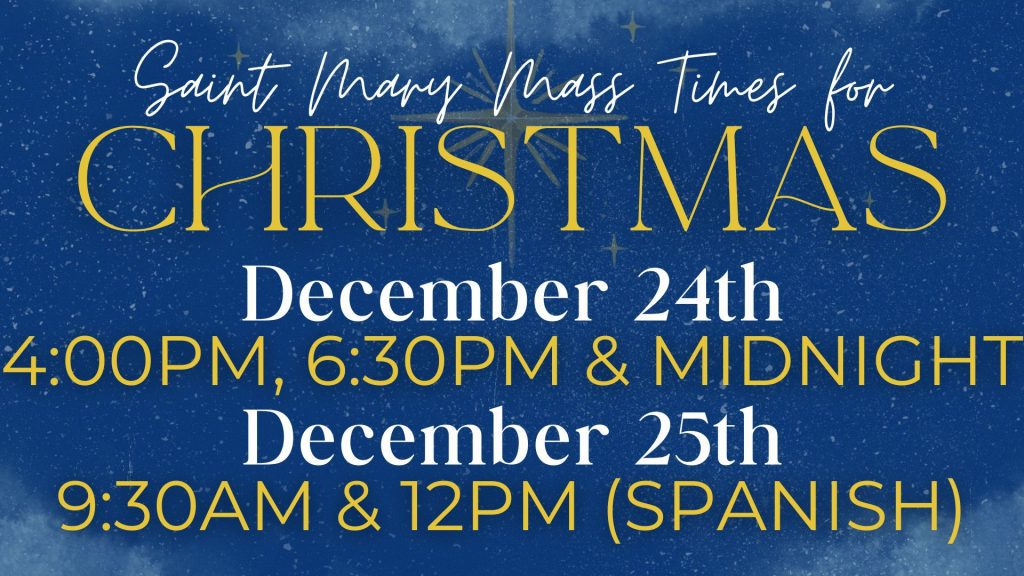 - 10:00am Mass on December 25th is the only Mass time we will have on Christmas day.