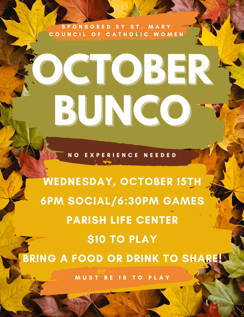 Bunco Nights (fun, fellowship and FUNdraising–proceeds benefit ministries)
