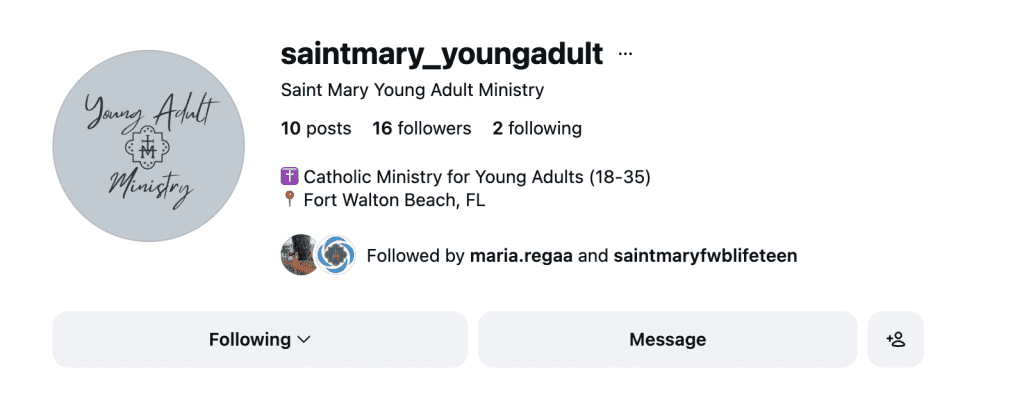 Follow our Young Adult Ministry page on Instagram to stay updated!